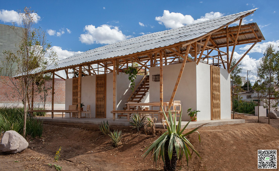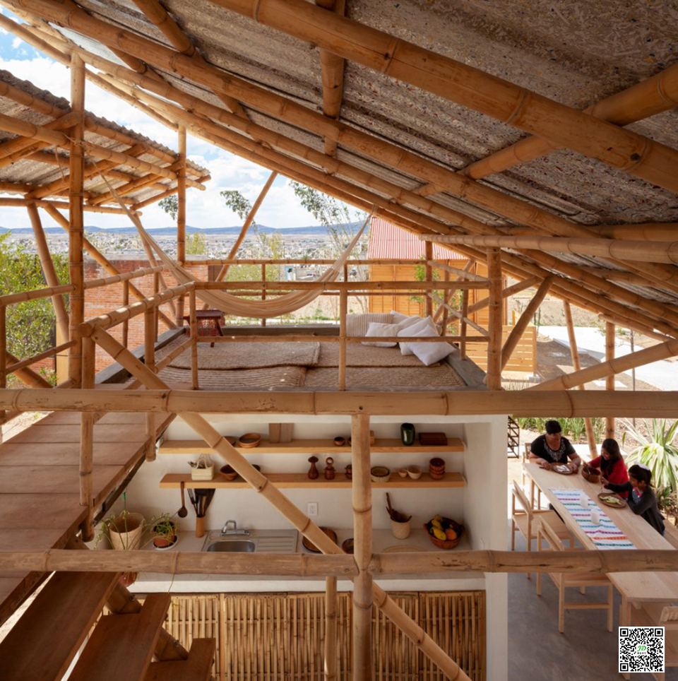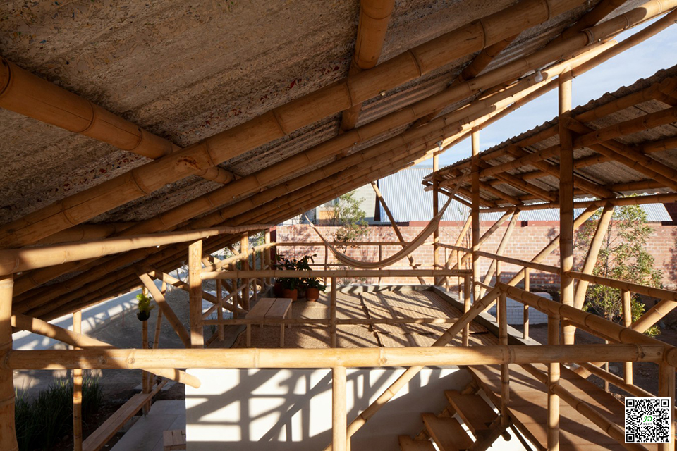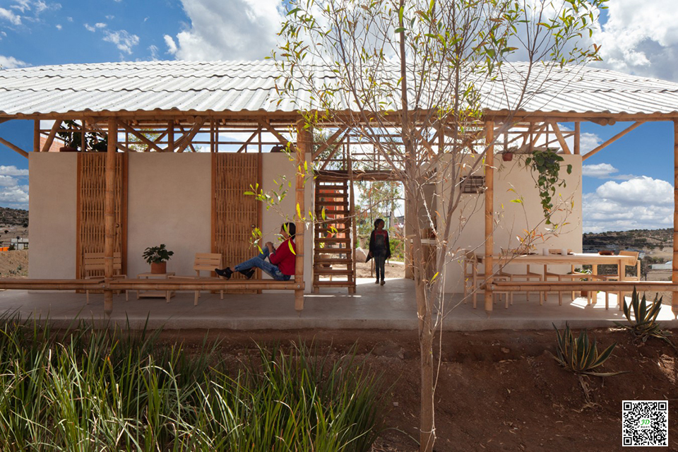 该项目位于墨西哥莫雷洛斯州的一个传统竹结构住宅建筑,它是一个半开放式的门廊建筑,竹建筑上面覆盖着一个大屋顶,周围环绕着绿植与果树。由于当地的建筑特色,该竹结构的屋顶被抬高并且设计成倾斜的角度。半开放的室外空间和绿色植被为建筑创造了积极的公共空间,提高了建筑的私密性和社会生活的质量和价值。