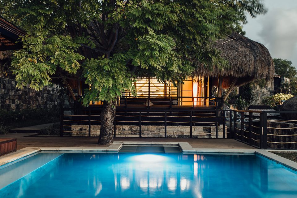 At the heart of the resort stands a towering and multi-layered roof that demonstrates true Balinese architectural craftsmanship. Alang alang and bamboo, the two naturally cooling materials utilised in Suarga Padang Padang’s construction, are used throughout the entire resort, ensuring rooms maintain a comfortable temperature despite the island’s tropical climate. With sustainability at its core, Suarga Padang Padang was predominantly built with recuperated wood, local Javanese bamboo, and locally made limestone bricks, while villagers on the island of Sumba were employed to collect the natural stone used in the resort’s construction. For ongoing water usage, Suarga harvests and recycles approximately one million litres of rainwater via flat rooftops, and the resort also produces more energy than its total consumption per day from solar panels.