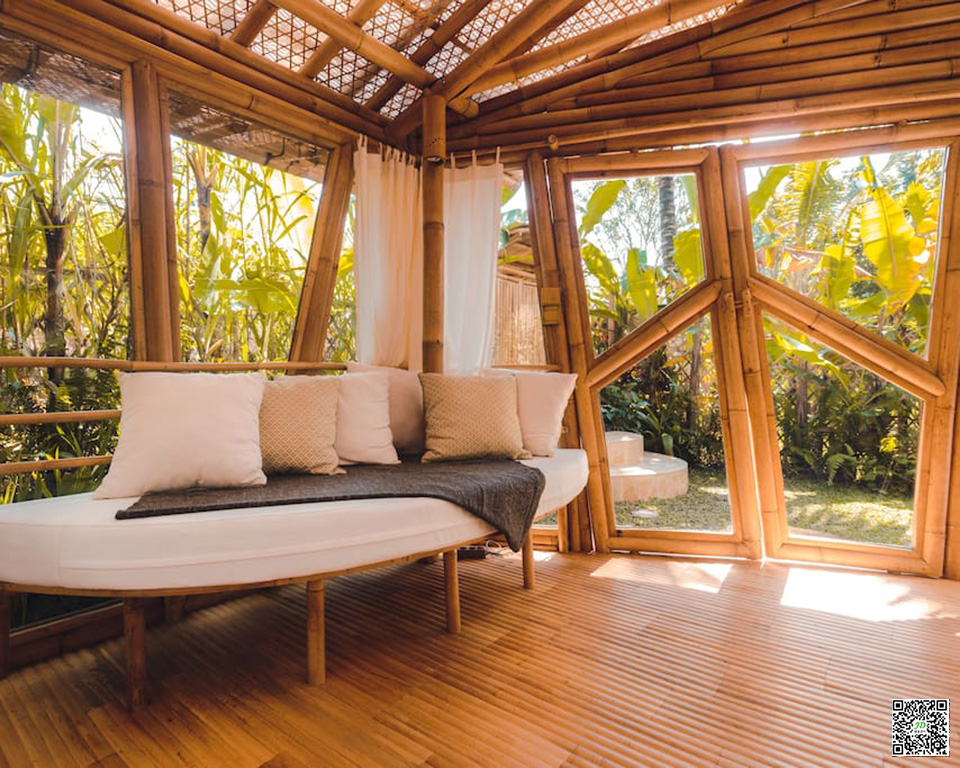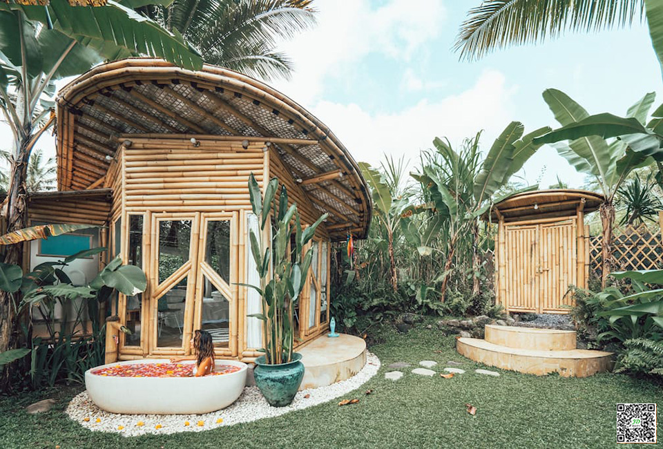 这座竹制竹房屋以更小、更现代、更时髦的设计建造。非常适合情侣度假。