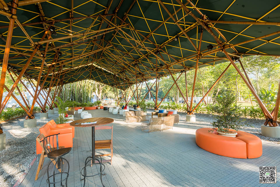 可部署竹展馆是一个基于生物的空间结构,是为SESC商业社会服务部建造的。展馆位于巴西里约热内卢帕拉蒂市的佩雷库-阿库河岸。竖立在海边大西洋森林的绿色校园里,计划建造一个开放的屋顶空间,没有墙壁或隔板,举办文化和社会活动。展馆被设计成沉浸在帕拉蒂市的文化生活中,这里有自然美景、热带生物多样性、本土文化和殖民历史。