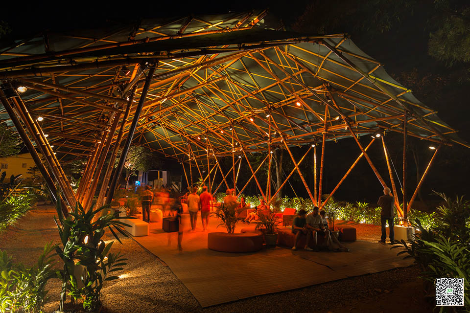 The Deployable Bamboo Pavilion is a biologically based spatial structure built for the SESC Commercial and Social Services Department. The pavilion is located on the banks of the Pereku-Acu River in Palati, Rio de Janeiro, Brazil. Set on a green campus in the Atlantic Forest by the sea, the plan is to create an open roof space with no walls or partitions to host cultural and social events. The pavilion is designed to be immersed in the cultural life of the city of Palati, with its natural beauty, tropical biodiversity, indigenous culture and colonial history.