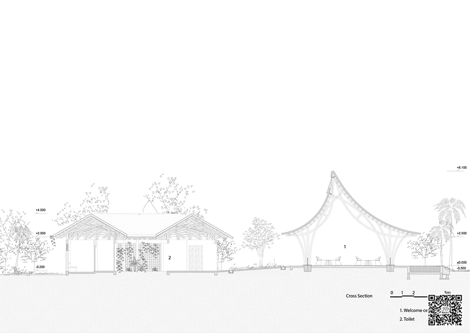 Yinwei tourist center in Qing’an is located in a natural landscape cemetery 10 km southwest of Shunhua. It is a pure bamboo building. Traditionally, cemeteries are associated with a heavy atmosphere of death, loss and sadness, creating a sense of melancholy. Therefore, the client and the architect mutually agree to seek an architectural solution to design a more peaceful and peaceful space.