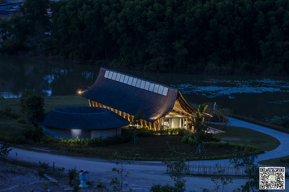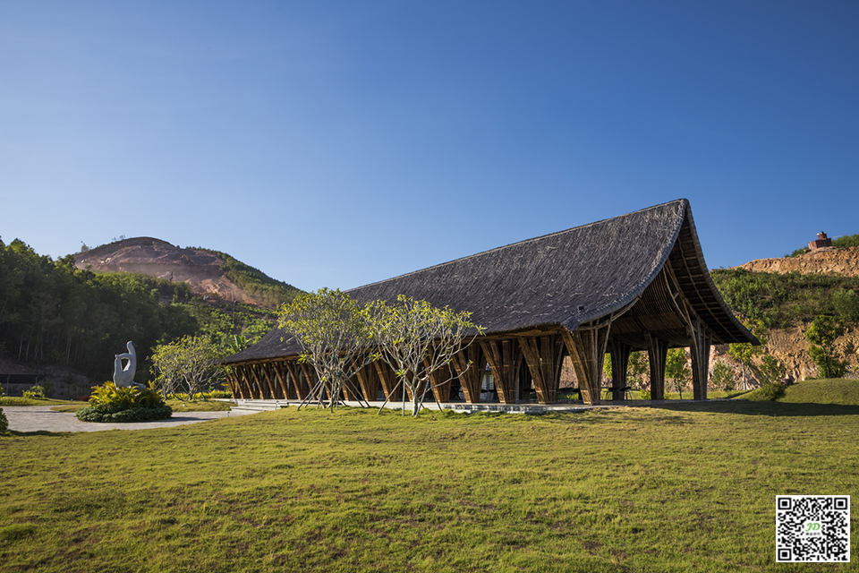 Surrounded by four lakes and nearby mountains, Huoan YINWEI park is home to trees, flowers and various other vegetation, which has helped to create a lighter and brighter feeling. In architecture, the highly curved bamboo roof is inspired by the softness and gentleness of the nearby hue and hogong River, a common link between Vietnamese.