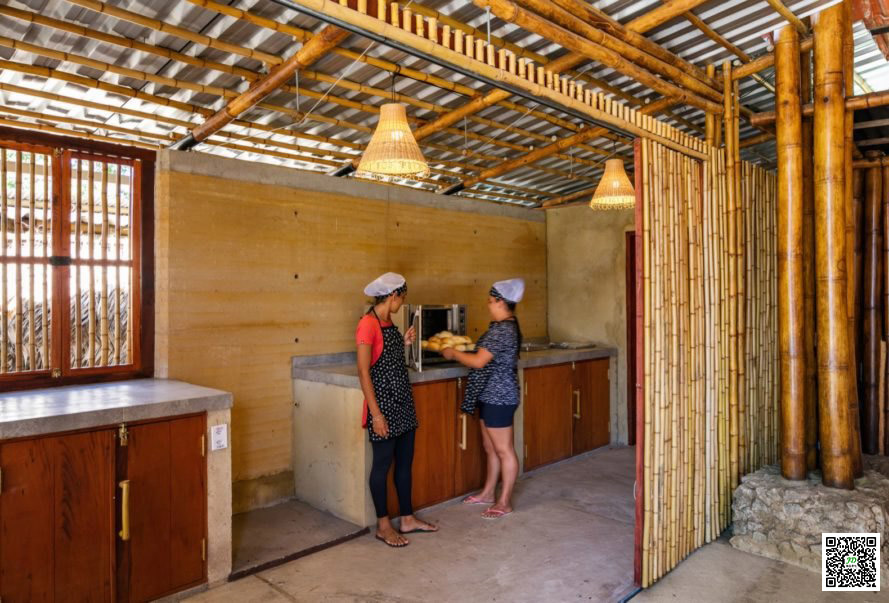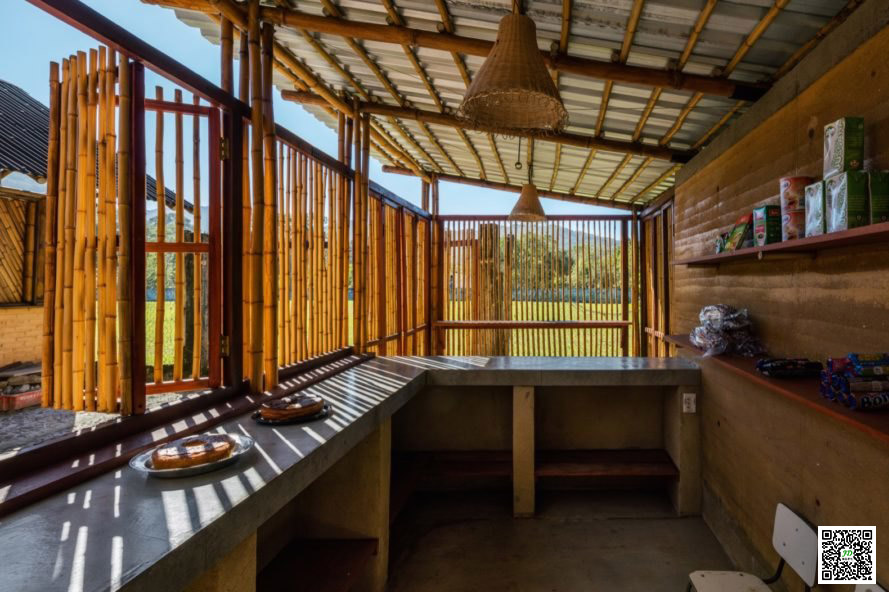 “The community determined all the content and procedures of the building and the different parts that were built at different times over the last 10 years.” Located 50 metres from the beach and facing the sea, the community centre takes advantage of the cool crosswinds by taking advantage of the elevated roof and minimising vertical walls to pass unimpeded through the building. The rammed earth bricks provide natural insulation and thermal quality while using bamboo structural frames and exterior doors and Windows to help glare sunlight shielding interiors.
