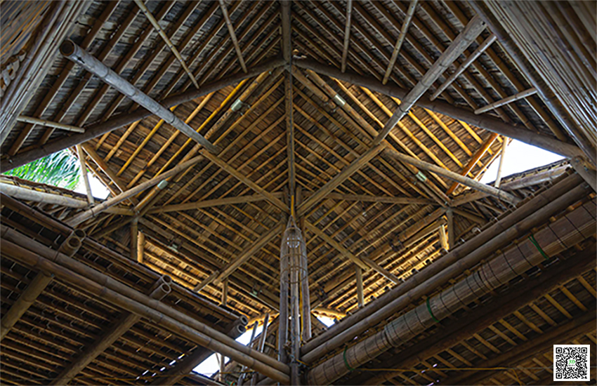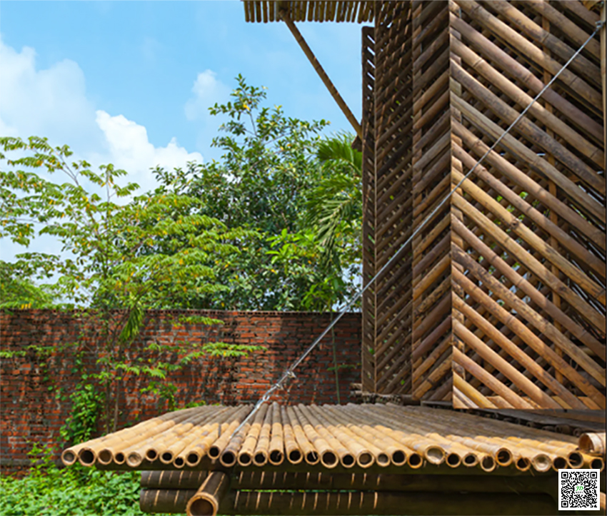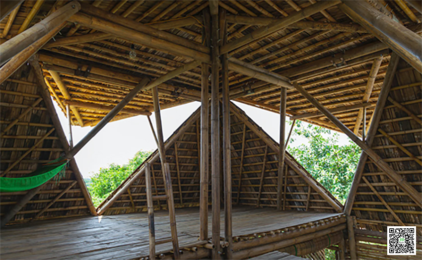 越南竹屋的整体设计美观又实用,竹屋还包含了小的立体花园、阳台、小甲板,竹屋下方在非洪水季节还能种植植物与养殖动物。这种竹屋建筑帮助人们安全度过严峻的自然灾害,并降低了自然灾害带来的损失,对于生态和经济的稳定发展起到了很大的作用。