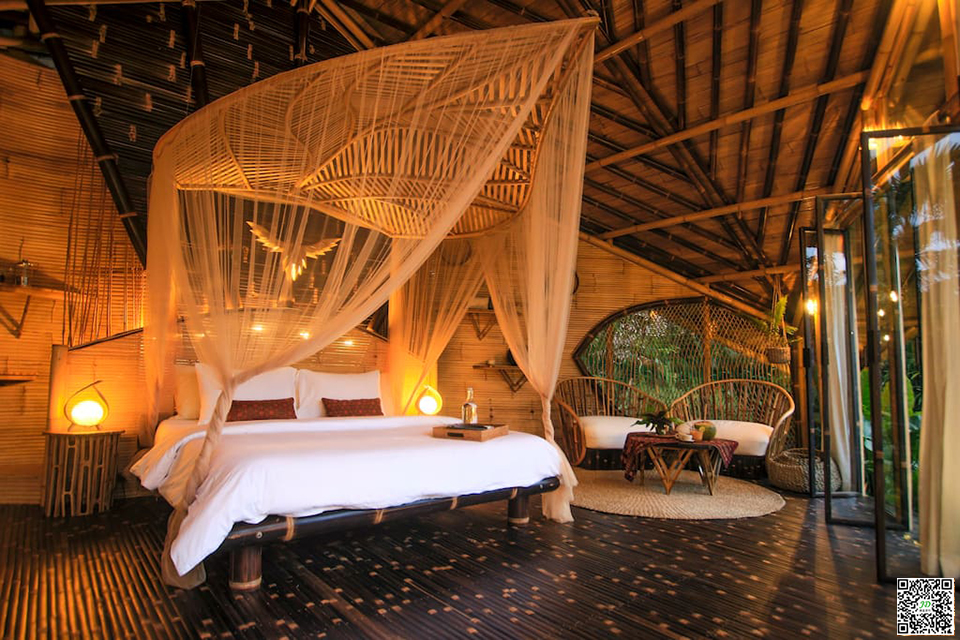 Hideaway Falcon welcomes long-term travelers, nature lovers, spiritual people, hikers, backpackers, artists, musicians and eco-enthusiasts to experience Bali’s unique experience. It is best suited to guests who have ideas about the environment and treat the little bamboo house with love and care. (Foreign case: Shanghai Jingdao Yuanzhu can be further designed and constructed)