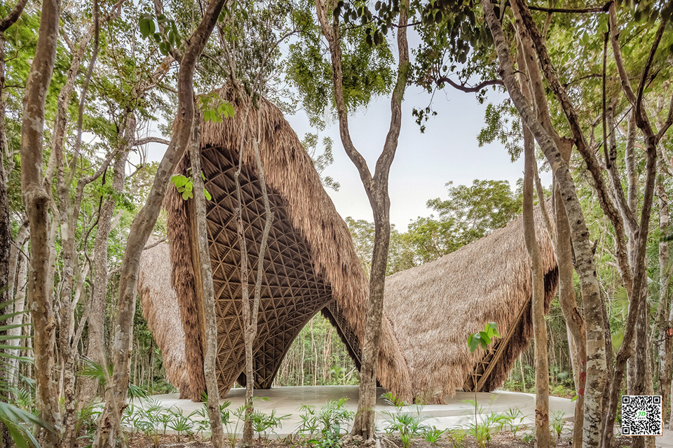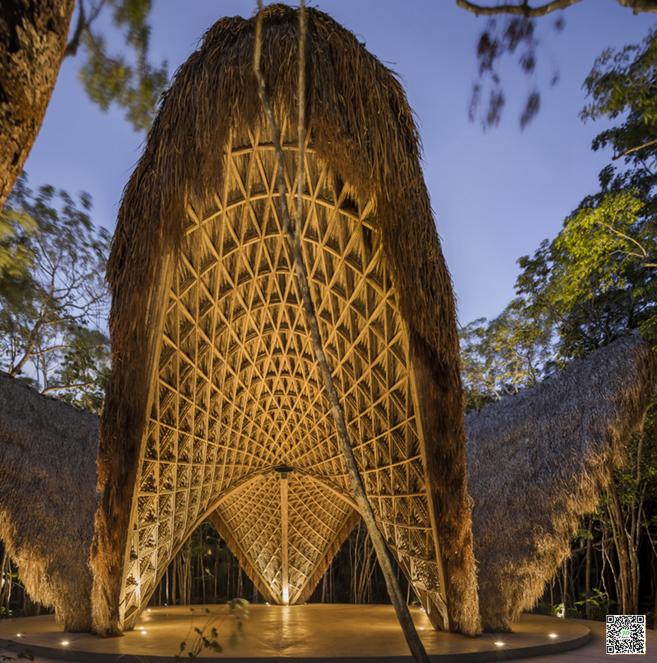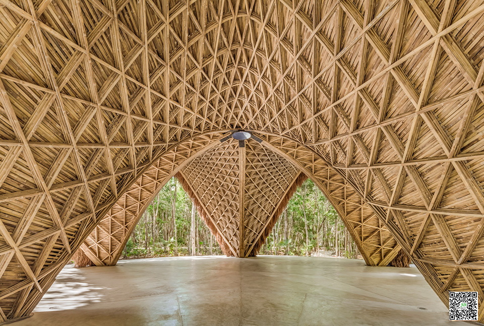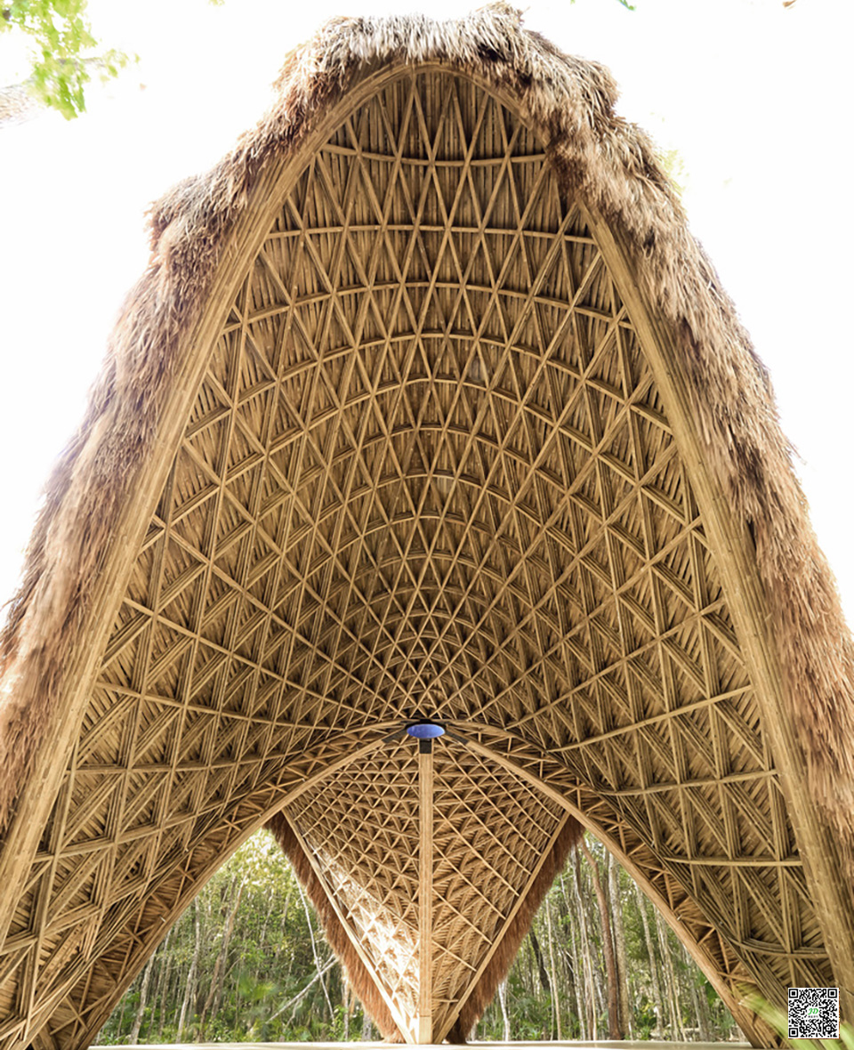 由于其在快速生长收获周期中良好的碳封存作用及其在重量比上的高强度(特别是在编织在一起时),竹子是一种具有惊人潜力的可持续环保建材。 竹建筑结构通过设计和计算足以抵抗飓风。 该项目所用的竹子在邻近的恰帕斯地区可持续种植。在外部,则覆盖了一层当地的Zacate(草茅屋顶),这是该地区典型的保护结构,其能在让建筑避免受雨水影响的同时,能在潮湿的热带气候中具有良好的通风。
