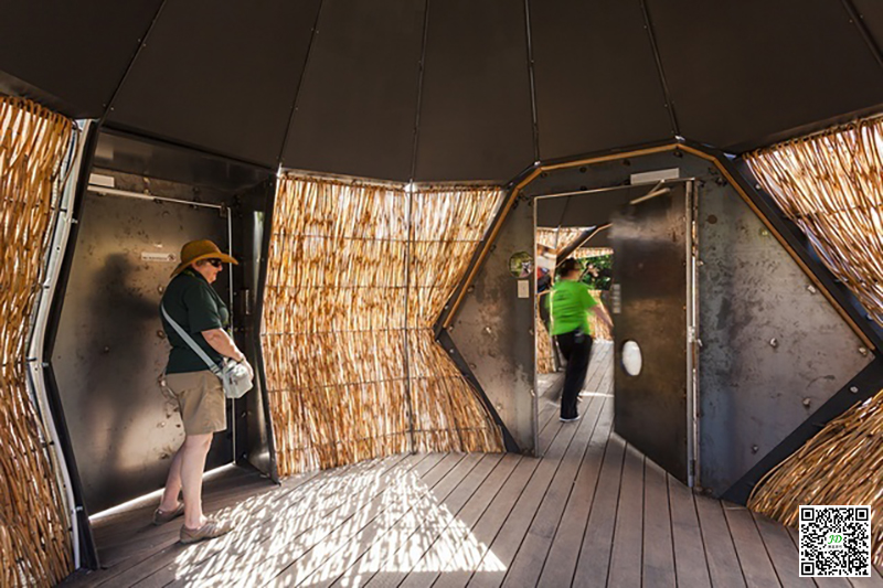 该三层的结构通过金属和藤蔓混制,与人工创造的自然雨林环境相一致,又富含对孩子的教育意义,与其它区域所用的材料一起搭配构成了该项目的整体设计。同时,这些材料也是现代动物园设计的必备元素。