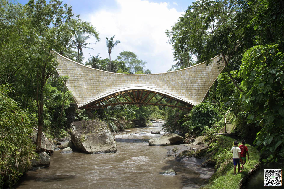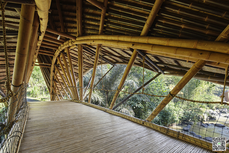 这座大桥是专门用于行人通行的,连接了绿色学校(Green School)的东西部,是校园内主要交通的基础组成部分。
