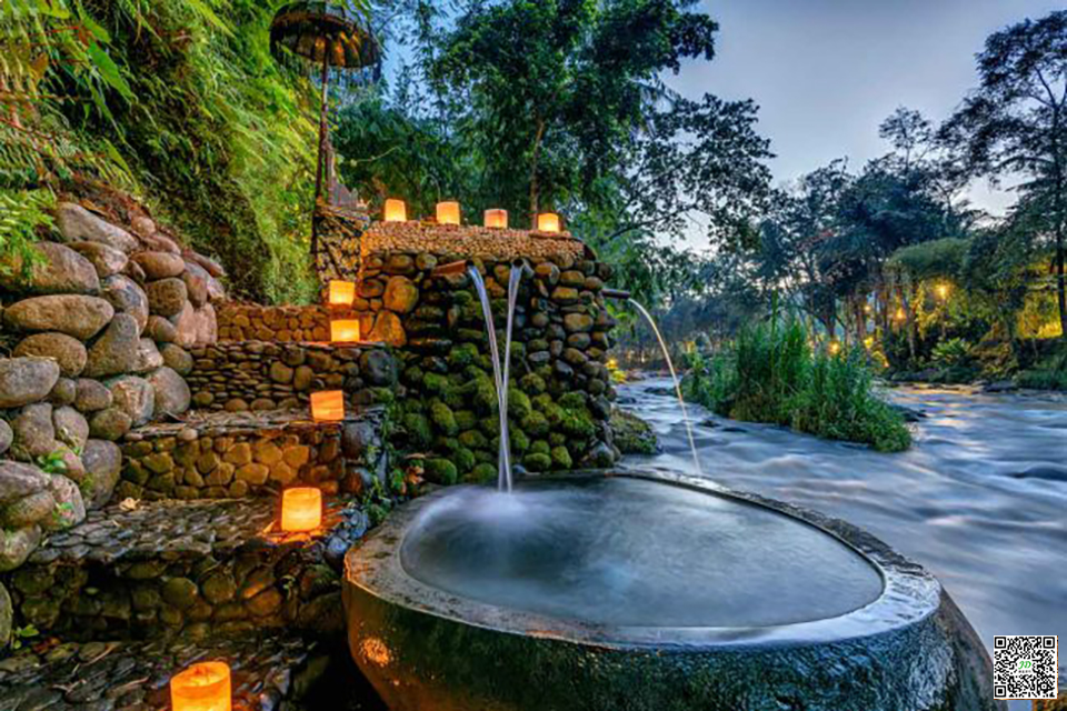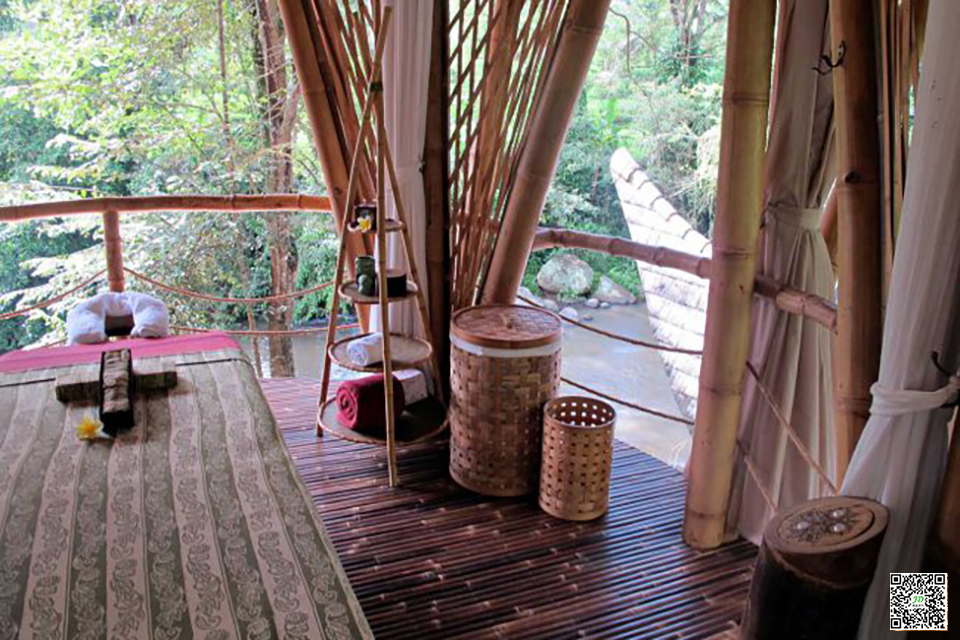 This is a bamboo forest side spa, built on land, using a variety of energy, from the continuous flow of river to the property itself.
