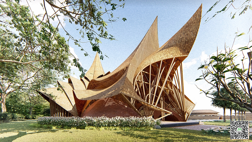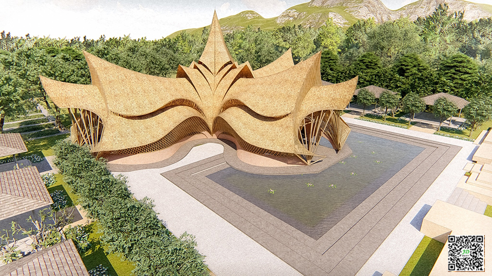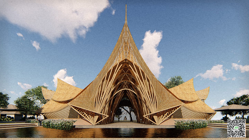 泰国佛教寺庙,全球著名佛教寺庙集中地,每一座寺庙都朴实无华,但在泰国人民心中,却因务实与亲和而成为圣地.泰国寺庙建筑众多,其中最为出名的佛教寺庙分别是卧佛寺、玉佛寺、大王宫、云石寺、集拉达宫和阿南达宫六大佛教寺庙.但是用竹子建造的寺庙在泰国也算是屈指一数了。该建筑使用几乎是全竹结构建造,竹建筑外观建造形式朴实壮观,像一只将要展翅高飞的凤凰!