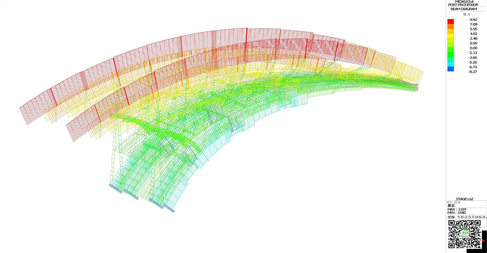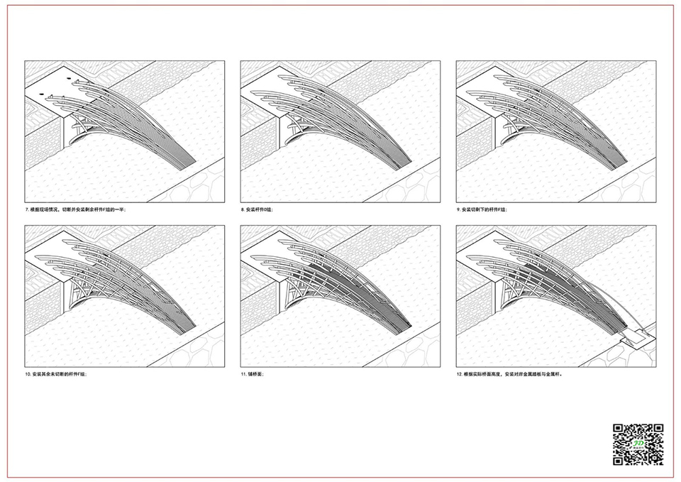 最终,竹构悬臂桥,仅靠竹子的力量,自一岸飞架而出,直达对面,形成悬岸飞桥的画面。桥的端头同对岸脱开,犹如“断桥”,强化了悬臂这一结构形式的奇观感,形成了一种因结构张力而产生的戏剧性。
