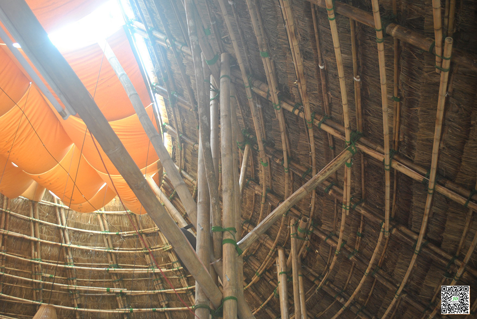 The bamboo structure solution is unique through the use of knot art for a new experience of wind pressure continuity and bamboo details.