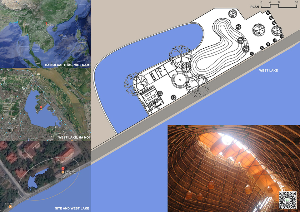 The bamboo building restaurant concept is a body building, inward sensitive to the sunlight and wind structure caused by the geographical features of the West Lake itself, and considers the flexible volume to adapt to the site. Bamboo is naturally chosen for the realization of a concept and situation. A total of 5,500 bamboo trees six meters long were transported to the site from the forest 100 kilometers west of Hanoi. Six meters is also the maximum length that trucks are allowed to enter the city.