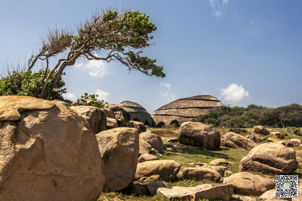 Scattered across Yala’s semi-arid landscape and along the coastline are massive rocky outcrops; these impressive landmarks provide habitat for wildlife. These huge round formations are echoed at a micro scale by termite mounds and suspended beehives found throughout the park. To create a natural fit into Yala’s landscape, the architecture of the camp adopts a human scale between the existing macro and micro forms and derives its forms from these intriguing natural formations. The existing vegetation is retained to ensure an authentic experience of the landscape. Local influences form an integral part of the project, from vernacular traditions and materials to community involvement.
