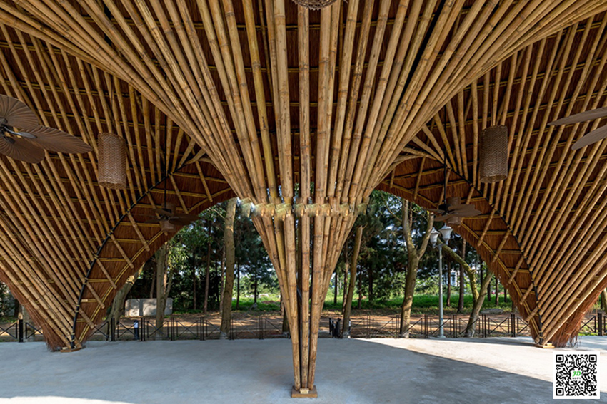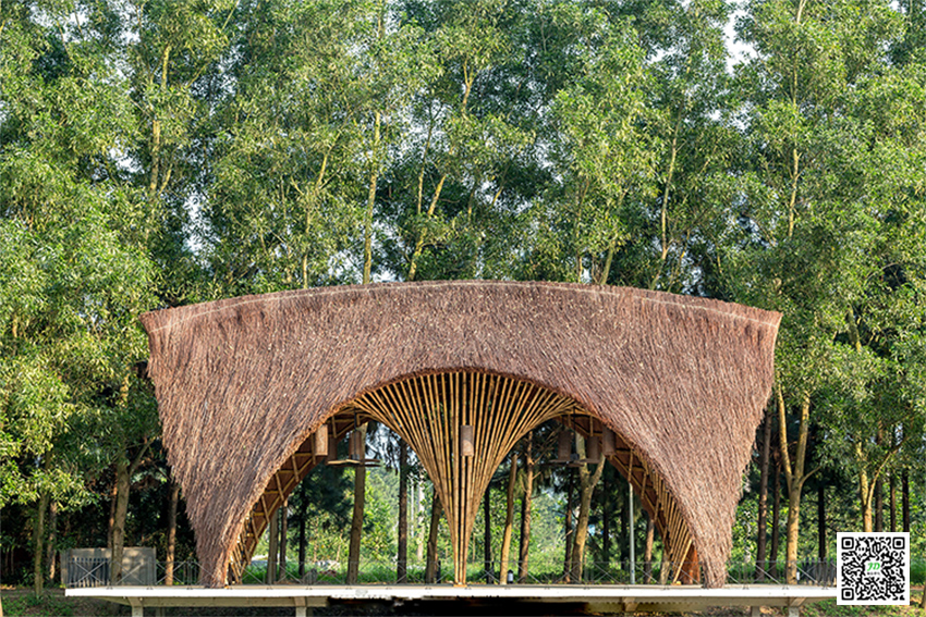 该竹棚建筑项目坐落在越南风景区一条小河旁边,其实使用的主要材料几乎都是竹子建造而成,从此这里成了游客短暂休息,娱乐,乘凉的好去处!同时这里也成为一个靓丽的景观!