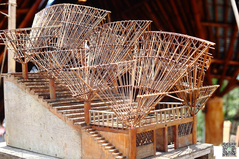 engger 村是许多小规模农场主的家园。他们在国家森林的外围种植咖啡。这个村子被巨大的竹子(Dendrocalamus asper sp.)包围,但这些竹子却没有得到充分利用。鉴于它们的大小和强度,这些原生竹子毫无疑问最适合这个项目:舞台需要宽敞的空间和屋顶跨度。