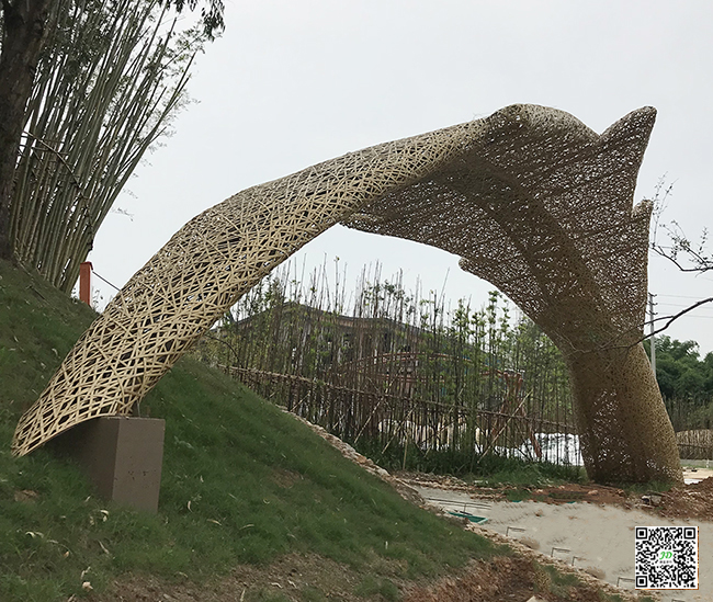 此竹编项目由一个造型个性十足创意竹龙编织,由龙头和龙尾竹编编织而成! 由上海境道原竹深化并施工。龙,象征着一种精神,是一个民族的图腾,在中国和天地世间万事万物都有有联系。龙在中国传统文化中是权势、高贵、尊荣的象征,又是幸运与成功的标志。 这也是国内首个以创意竹龙编织的竹龙项目,目前中国第一长度竹龙。将成为当地游客游览牌照的“网红”打卡胜地!