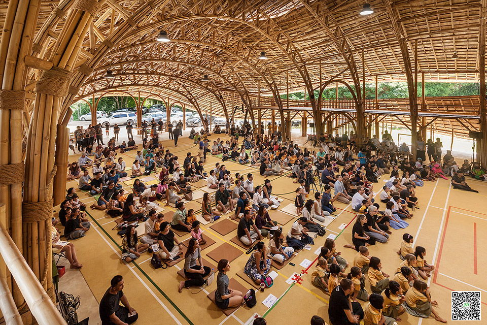 体育馆的体量较大,能够容纳300名学生,而又与学校的其他建筑,乃至本地的天然丘陵地貌相融合。建筑师完全采用绿色低碳的竹子作为原料,打造了一个拥有现代化体育设施的场馆。