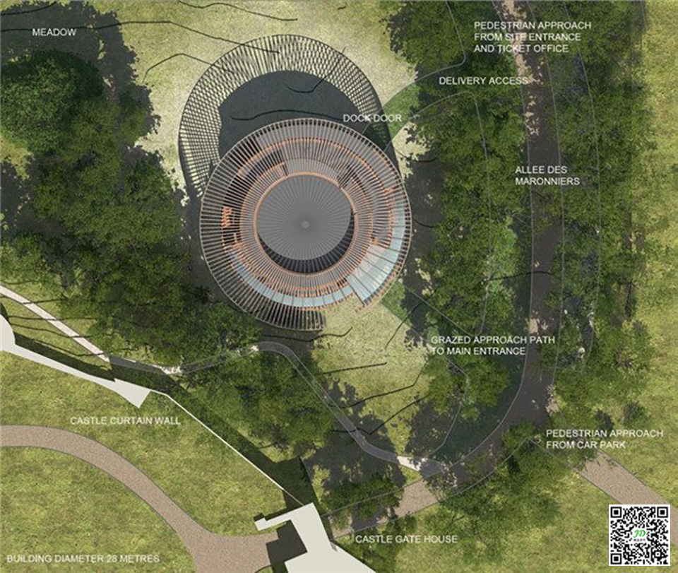 而建筑所在的区域也似乎与莎士比亚有着万千联系:42公里外的阿金库尔战役是莎士比亚经典剧作《亨利五世》的发生地;在35公里外的金缕地,亨利八世建立了莎士比亚剧院的建筑原型;而44公里外的Saint Omer图书馆中藏有300年前第一本莎士比亚的对开错本书籍。