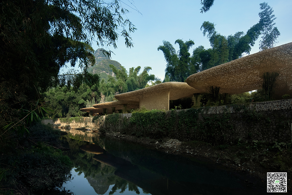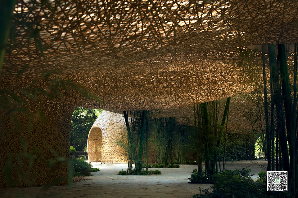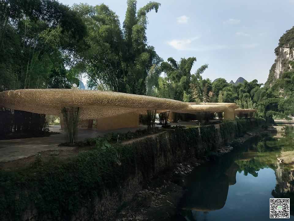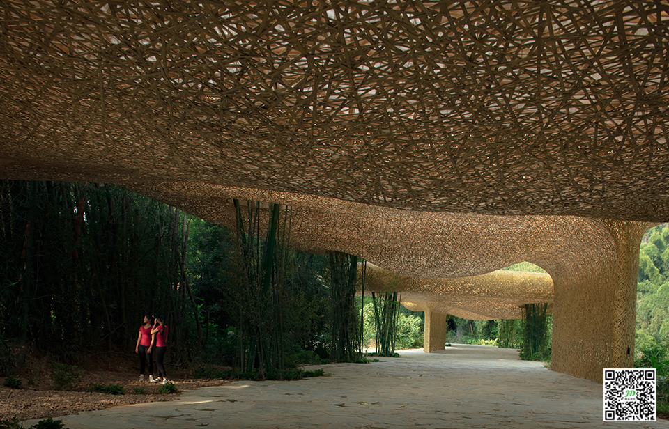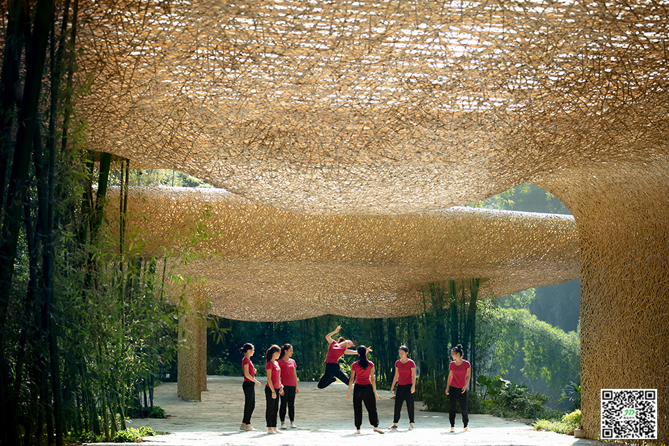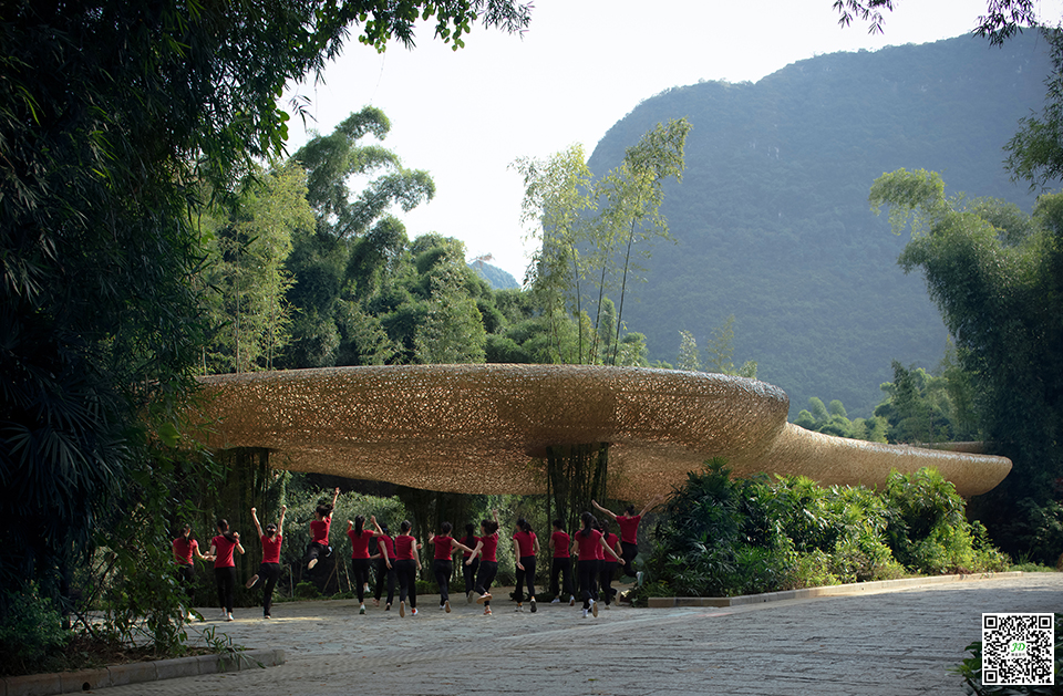 竹林亭台楼阁(印象刘三姐)-境道原竹竹建筑经典案例。有句俗话说的好叫桂林山水甲天下,天下闻名遐迩。项目地位于阳朔印象刘三姐园区,中国最富戏剧性的自然景观环境区之一。无尽的绿植环绕着大型山丘巨石之间,面对如此宏伟的景观地貌,任何与之不协调而对抗的设计手法都变得不再合理。基于这种对于现场的理解,自然元素本身即成为这次建筑概念设计的前提,尤其是竹子。