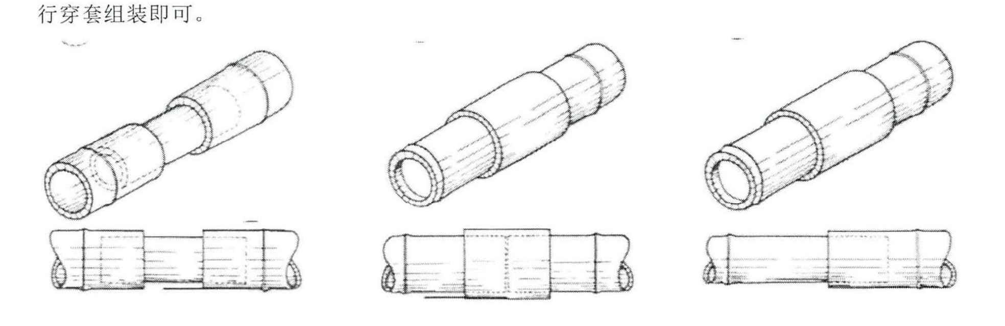 图2-4套筒式的连接方式往往用于解决多根原竹拼接时的节点构造问题,在一般建筑中用的较少,主要用于排水管、沟渠之类的基础建设设施。这种做法较为简单,利用直径大小不同的原竹进行穿套组装即可。