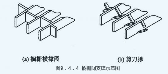 楼面梁应与支座连接,或在靠近支座部位的搁栅底部采用连续木底撑、搁栅横撑或剪刀撑(图9.4.4)。