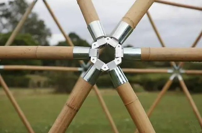 (3)、施工方便、应用范围广:多根竹构件通过竹竿连接节点连接,并且使用螺栓连接,因此施工方便,可以替代大跨度空间结构中的纯拉压杆,就用于网架结构、网壳结构、弦支穹顶结构及张弦梁结构等。