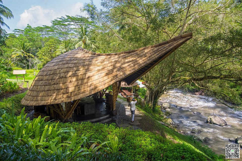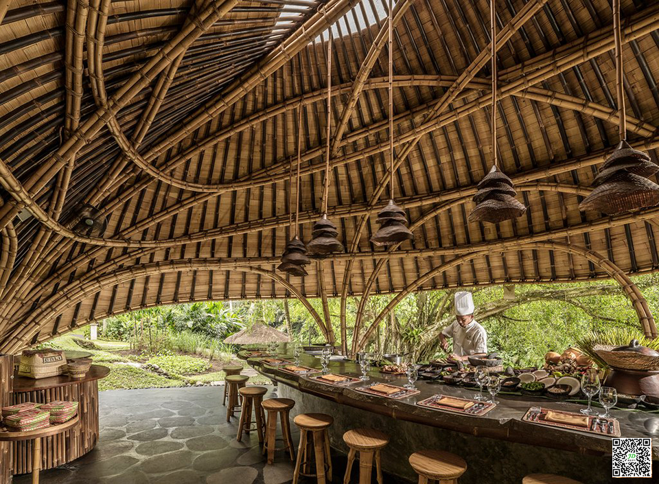 11.印尼:巴厘岛 阿卡莎餐厅 竹建筑 阿卡莎特色竹餐厅和果汁吧旨在成为海文项目的中心枢纽,将提供新鲜制备的当地有机食品,包括各种原汁、冰沙、酏剂,强调有机生食、素食和素食,以及结构化的火山井水、高速互联网和温馨的环境。