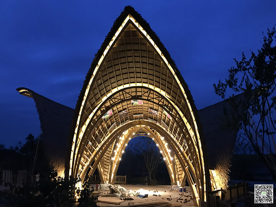 该项目由四川新希望现代农业旅游发展有限公司投资,选址于简阳市贾家镇车厂村、麦地村、天宫山村、久隆村、永盛村、埝水村6个村落,规划总面积12200亩。该项目以“东进新希望·美好新生活”为形象定位,最终将项目打造成“全年龄运动产品、全季候运动休闲、全科技运动体验”的国家级旅游度假区,并着力打造全国乡村振兴示范区。竹结构位于该旅游区入口位置.