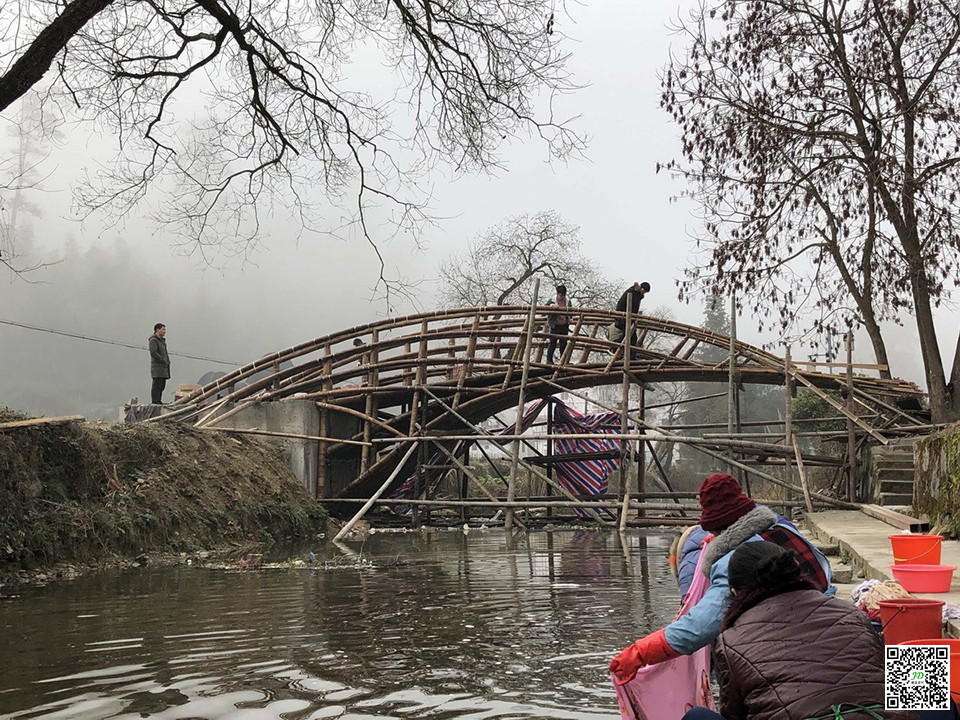 最终,竹构悬臂桥,仅靠竹子的力量,自一岸飞架而出,直达对面,形成悬岸飞桥的画面。桥的端头同对岸脱开,犹如“断桥”,强化了悬臂这一结构形式的奇观感,形成了一种因结构张力而产生的戏剧性。