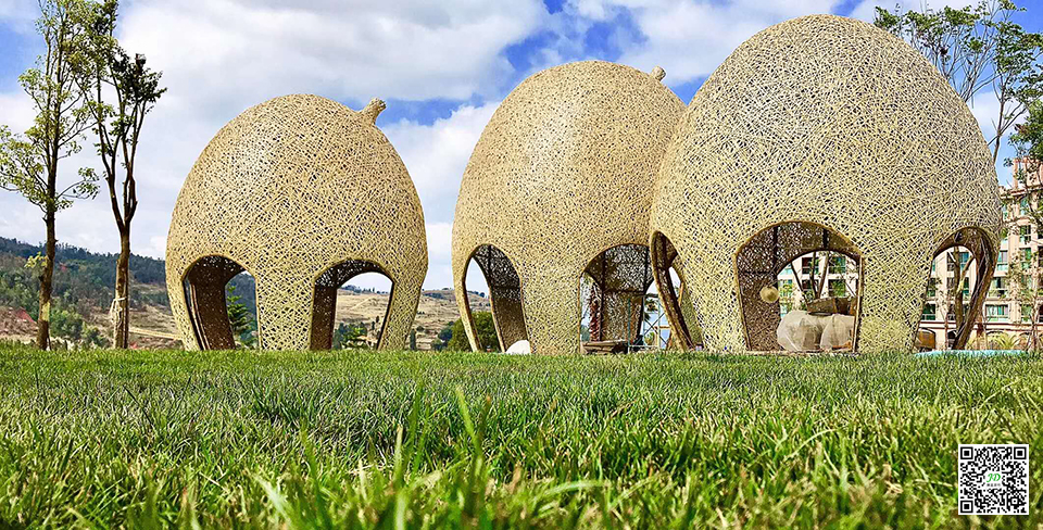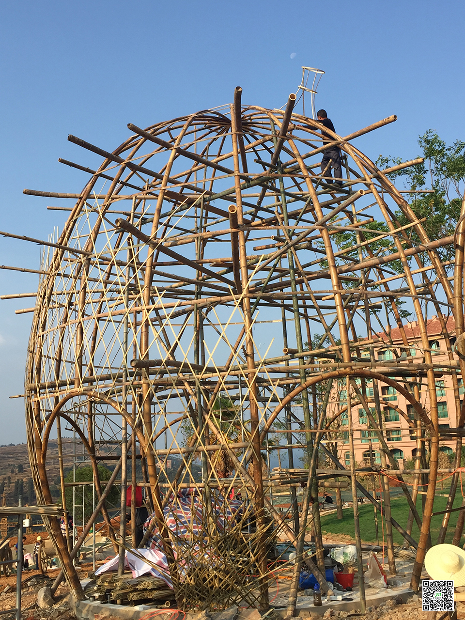 云南玉溪市:寒武纪小镇农场 竹编 竹景观